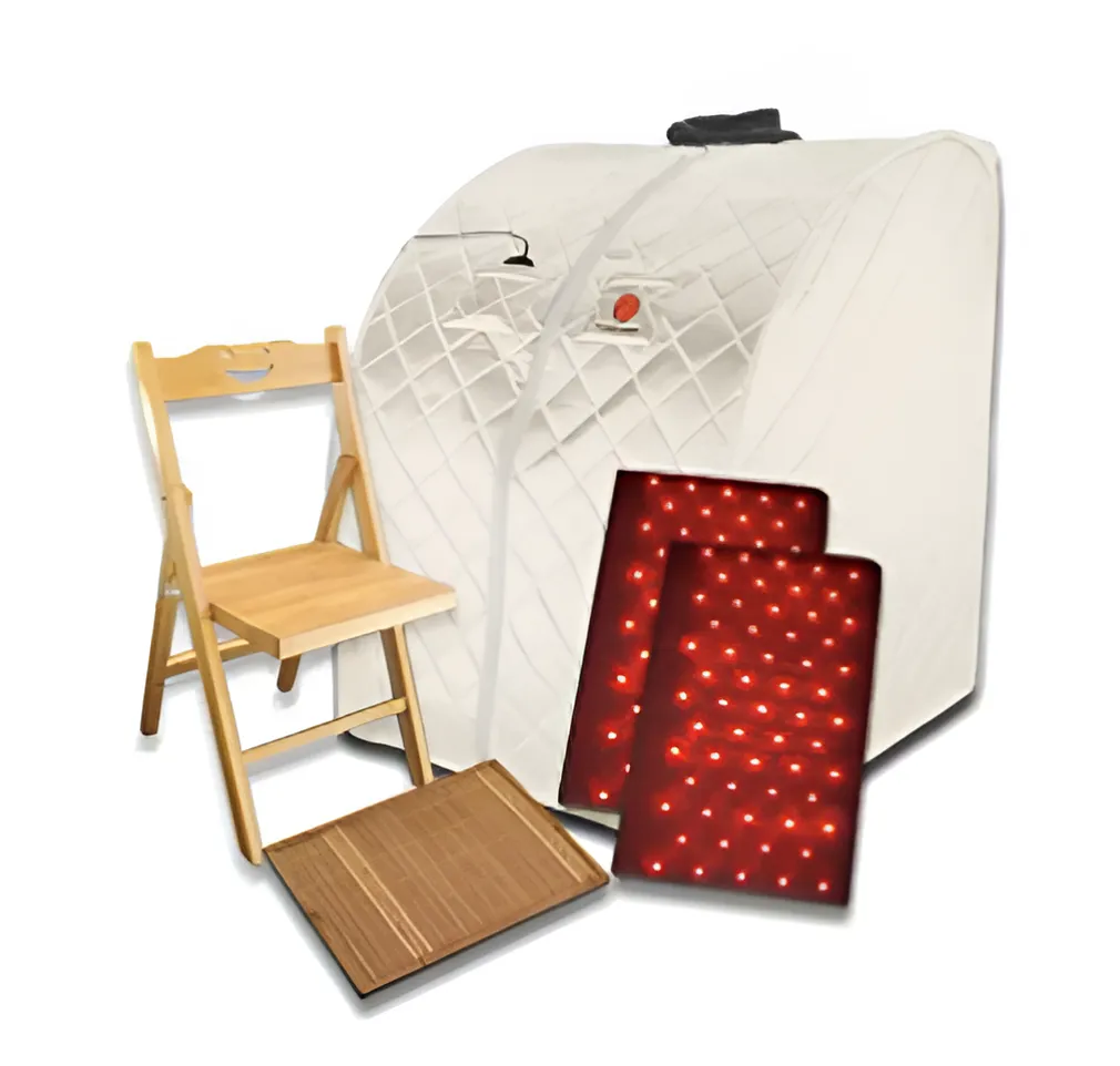 This is a great way to detox and sweat anywhere. This portable infrared sauna offers full-spectrum infrared, negative ions, earthing, and no EMF's.